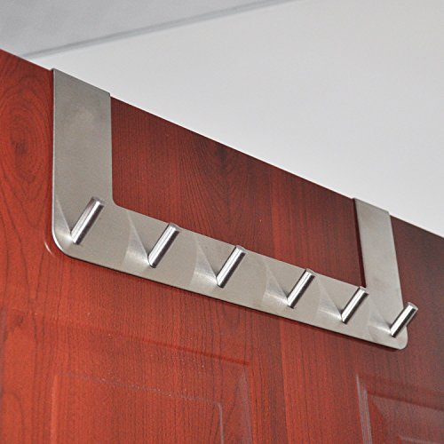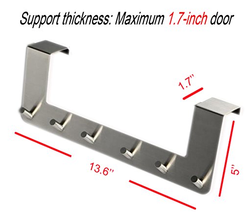 Over The Door Hooks Rack for Hanging Coat/Hat/Robe/Towel,Ulifestar Heavy Duty Stainless Steel Door Mount Rack Holder w/ 6 Hooks,Bathroom Kitchen Closet Drawer Door Hanger,Easy Install & Space Saving