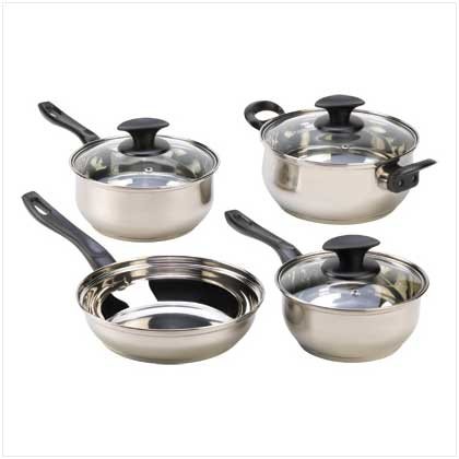 -. Feature : Weight 6.4 lbs. Stainless steel with Bakelite handles and tempered glass lids. Dishwasher safe. Two saucepans with lids (1.6 & 2.2 quart), 3.2 quart pot with lid; pan: 8 1/2" diameter x 2 1/8" deep. Set of 7 / If you are looking for the quality but not necessarily willing to fork over the dough, then this is a great set for the money. Fast, even heating, good looks, versatility and a decent combination of pieces in the set made it the perfect choice for you. / You will be pleased with the performance of both the pots and the pans. The handles feel solid and as long as you control the heat, they'll perform for you! Great set for someone looking to upgrade! / It is also dishwasher safe that makes this a perfect gift for a start up couple or to your beloved relatives. / 100% Money Back Guarantee Offered By DecorDuke. If for any reason you are not satisfied with our cookware set, we will offer you a full refund or a free replacement Guaranteed!