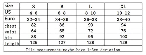 Please check your measurements to make sure the item fits before ordering. S: Bust---31.4-33.0";Waist---24.4-25.9";Hip---33.0-34.6";Length---40.9" M: Bust---33.0-34.6";Waist---25.9-27.5";Hip---34.6-36.2";Length---41.3" L: Bust---34.6-36.2";Waist---27.5-29.1";Hip---36.2-37.7";Length---41.7" XL:Bust---36.2-37.7";Waist---29.1-30.7";Hip---37.7-39.3";Length---42.1"
