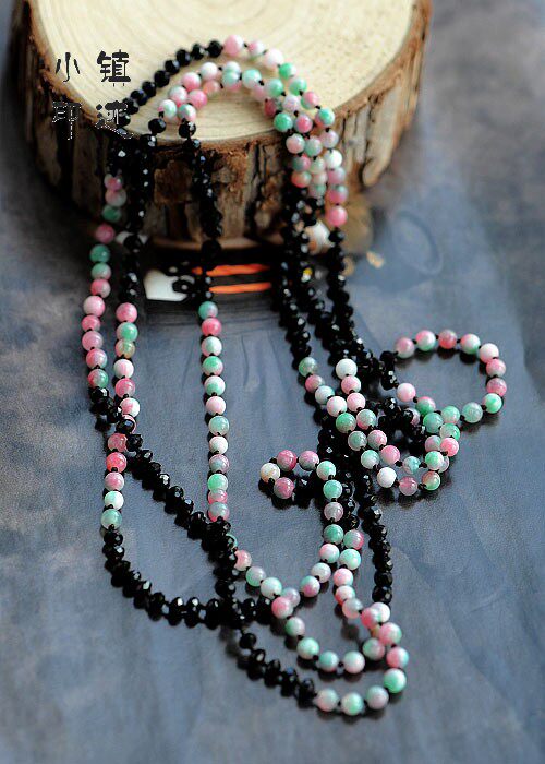Description: This product uses 144 natural stone and 144 black apple slice crystal hand-woven with cotton thread between each bead was made up of a section, very fine workmanship.