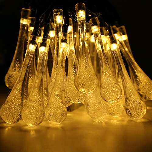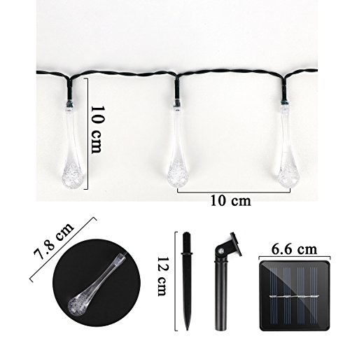 AICEDA 30 LED Solar Strings Lights, Solar Fairy Lights Water Column Shaped Waterproof LED Lighting For Home Yard Garden Patio Lawn Party Wedding Gift Indoor and Outdoor Events (Warm-White)