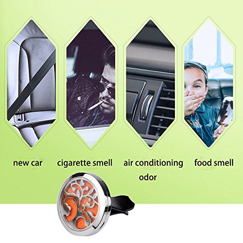 Diffuser Lockets: 30mm different patterns car oil diffusers clips with 22mm felt pads space. Made of stainless steel without rust, more durable. Choose Two car diffusers to get more aroma.