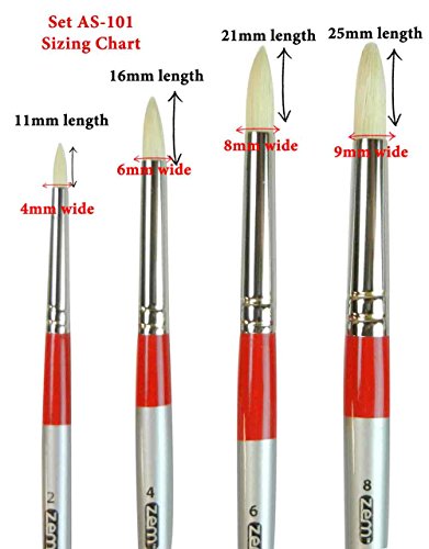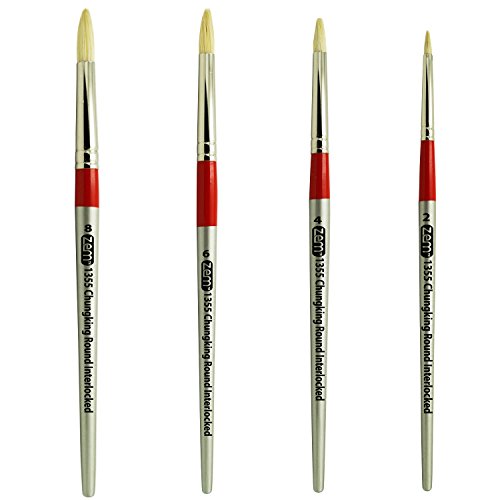 ZEM BRUSH Chungking Deluxe White Hog Bristle Interlocked Round Artist Brush Set Sizes 2,4,6,8