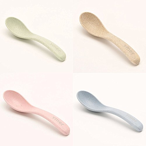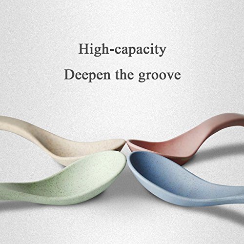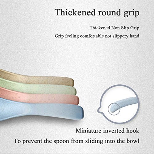 UPSTYLE Natural Wheat Straw Unbreakable Plastic Table Spoons Soup, Tea, Coffee Spoons for Kid or Adult (Pack of 4, Green + Beige + Pink + Blue)