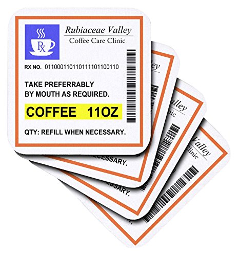 3dRose Funny Coffee Prescription. Humorous Prescribed Caffeine. Joke Medicine - Soft Coasters, Set of 4 (cst_194449_1)