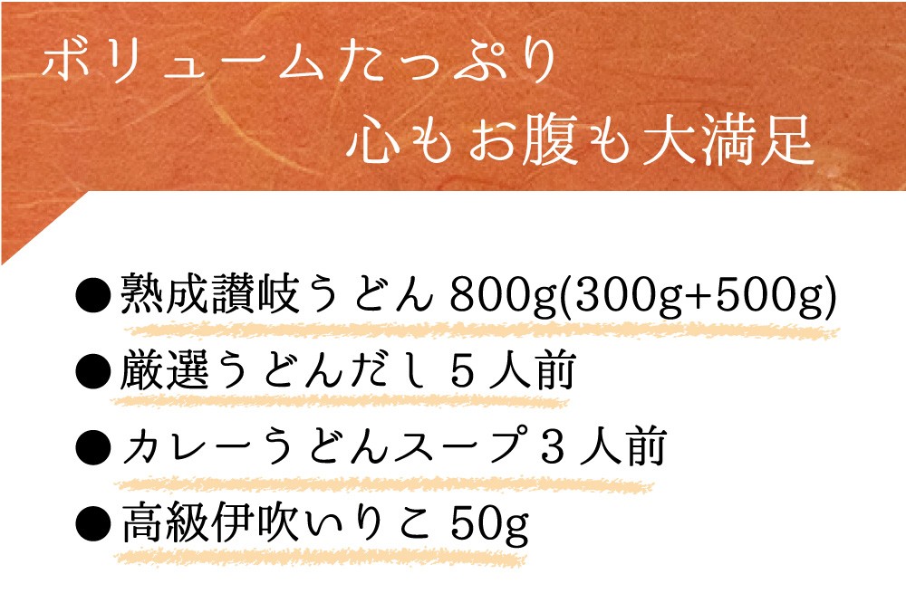 | 内容量 | うどん300g×1、500g×1 いりこ50g カレーうどんの素粉末タイプ15g×3 うどんだしの素7g×5本 ※本品の原材料名には、アレルギー物質「小麦、大豆、魚介類、豚肉、鶏肉」が含まれます。 |
