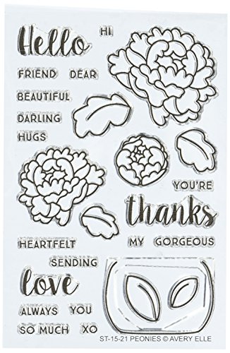 -. Binding : Misc. -. Brand : Avery Elle -. Color : Clear -. EAN : 0811568022799 -. Feature : These clear stamps peel off their backing and stick to any acrylic block making for easy stamping / Simply apply your favorite ink and stamp crisp clear images / They are made from 100% photo-polymer which is latex free phthalate free non- toxic and biodegradable -. Label : Avery Elle -. Manufacturer : Avery Elle -. Model : AE1521 -. MPN : AE1521 -. NumberOfItems : 1 -. PackageQuantity : 1 -. PartNumber : AE1521 -. ProductGroup : Art and Craft Supply -. ProductTypeName : HOME -. Publisher : Avery Elle -. Size : 4 by 6" -. Studio : Avery Elle -. Title : Avery Elle Peonies Stamp Set, 4 by 6", Clear -. UPC : 811568022799