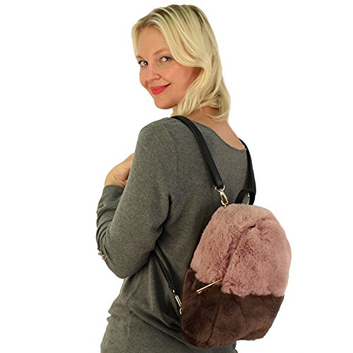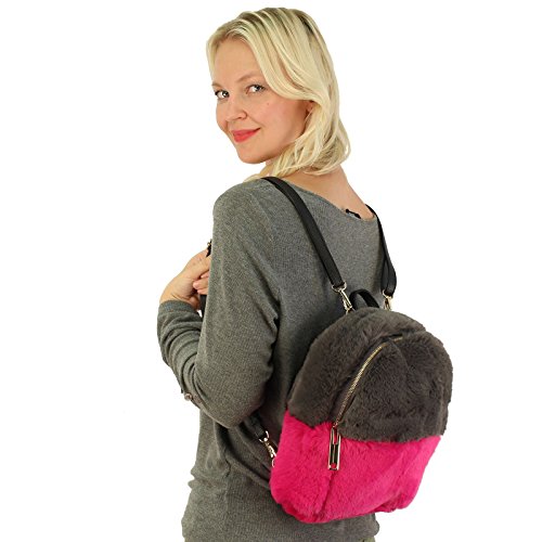 Winter Everyday Ultra Soft Faux Fur Furry Fuzzy Fall Winter Backpack Mid Size School Bag Day Pack Handbag Purse. Just in everyday fashion furry fuzzy faux fur handbag that will match your beanies hats as well. What a great versatile as a backpack, cross body shoulder handbag. This will go with everything, casual or a night out on the town. Interior zipper pocket for security items, credit cards, ID, cash money. Makes a great gift.Great for multiple seasons. Will compliment any outfit. Make a great gift for any one. Animal friendly, no animals harmed 0 |