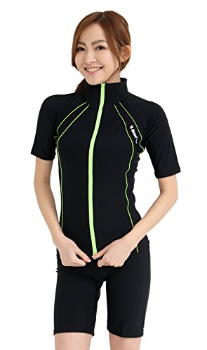 -. Title : L106 lemode(ルモード) レディース フィットネス水着 めくれ防止 (11Lサイズ, ブラック&ライム【半袖】)