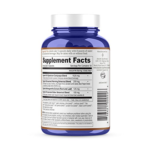 -. Feature : PREMIUM QUALITY: With a Full-Spectrum Fermented Cordyceps Blend, Fermented Warming Botanical Blend, Organic Ashwagandha Extract and an Organic Fermented Bitter Botanical Blend, Ancient Apothecary Fermented Cordyceps is specially formulated to boost energy, mental performance and more. / A NEW KIND OF EXPERIENCE: In Fermented Cordyceps, the formulation of Cordyceps Mushrooms, Organic Ashwagandha Extract, organic fermented botanicals, and organic herbs and spices provide your body with just the right combination for enhanced energy, clarity, and to support healthy metabolic function. / FERMENTED: What sets Ancient Apothecary Herbals apart? Live Fermentation, Essential Oils Infusion, Organic Herbs & Spices, and a delivery system of Warming Botanicals and Digestive Bitters which are non-GMO, vegan, gluten free and based on ancient Ayurveda medicine. Ancient Apothecary Fermented Herbs are powered by fermentation-our own proP.R.Ietary, patent-pending, dual-stage, live fermentation process. / CLARIFYING: Made with Organic Cordyceps, powered by fermentation, and infused with organic essential oils, Ancient Apothecary Fermented Cordyceps is designed to help to boost performance, mental clarity and concentration. / TRY IT RISK FREE: Buy with confidence when purchasing exclusively from Dr. Axe. Click the "Add to Cart" button to give Ancient Apothecary Fermented Cordyceps a try. If you're not 100% satisfied with your purchase, Dr. Axe will happily refund your order within 30 days of purchase. It's that simple!*