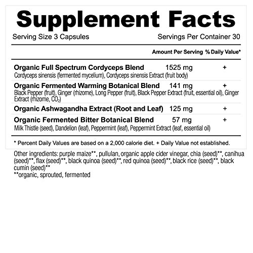 -. Title : Ancient Apothecary Fermented Cordyceps Mushroom Supplement, 90 Capsules - Infused with Organic Essential Oils, Ashwagandha Extract and Digestive Bitters