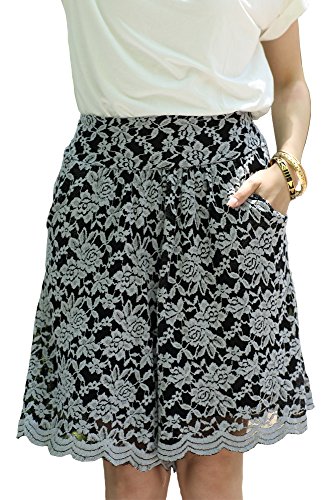 -. Title : (Goldjapan)ゴールドジャパン 大きいサイズ レディース ウエストゴム ストレッチ レース ショートパンツ フレア ブラック 黒 jp070
