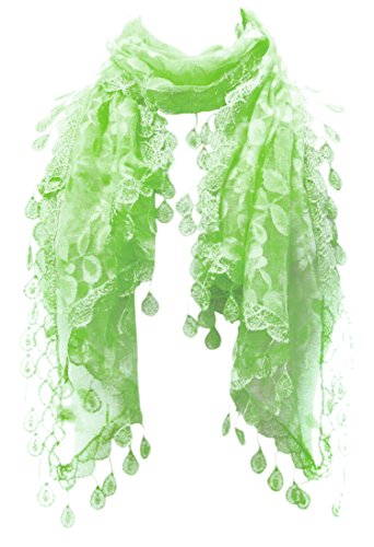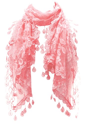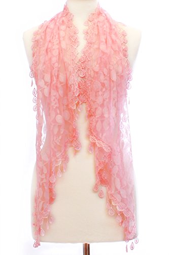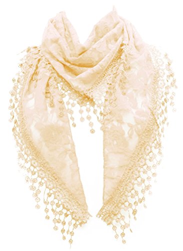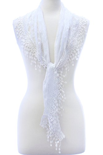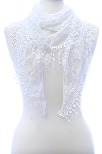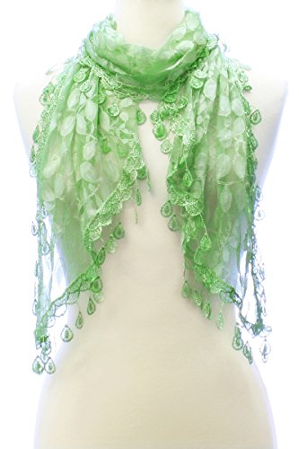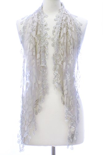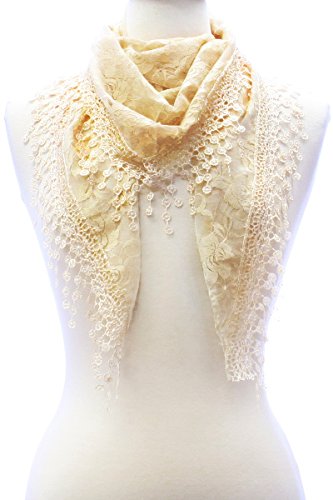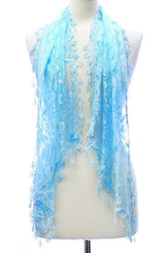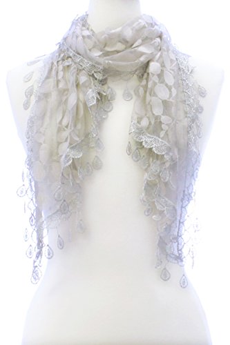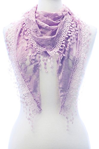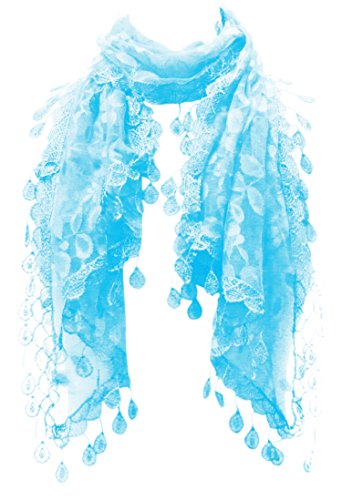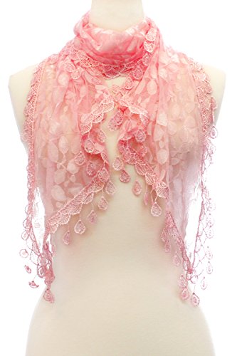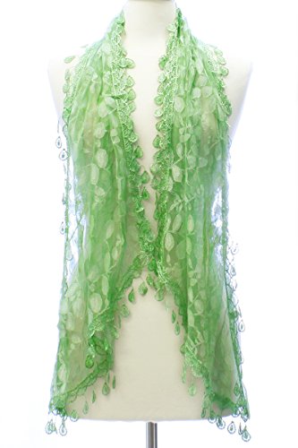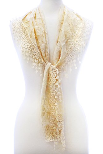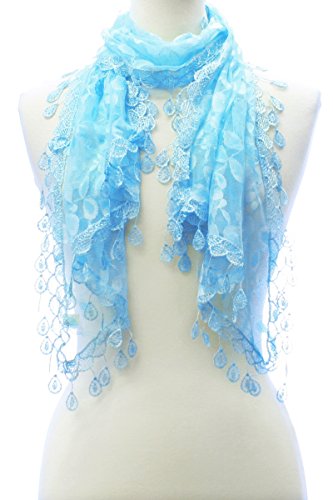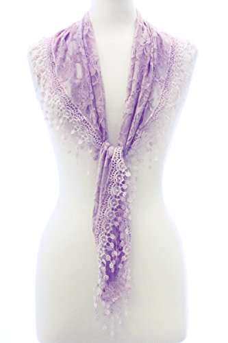 Binding : Apparel Product Description Lace scarf that looks incredibly chic- whether you are looking for rectangle oblong shape or triangle mantilla style. Long length allows you to style it in various ways- wrap it around your neck and tie it in a low loose tie; belt it around your waist like a sash, wear it as a head scarf or in place of a necklace. This light weight fashion scarf provides cool elegance, but not bulk. It's not the scarf you'll use for warmth, but rather one that can seamlessly carry you from day to night. Choose from a variety of colors. Tassel fringe adds dynamic movement and style. Nature inspired Leaf Scarf pattern with tear drop tassels 62x14 inches Rose Lace Triangle Scarf with flower tassels on 2 side. 58x19 inches If you have any concerns with this item, please contact us at Accessory Necessary on Amazon right away so that we can figure out a way to make you happy. What are you luxing for? Please note, colors may appear different than on screen due to screen monitor settings and dye lots. Quality can only be assured when bought through Accessory Necessary, NYC seller. 0 |