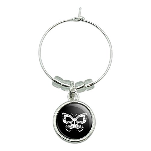 -. Brand : Graphics and More -. Feature : As unique as it is functional, this super awesome wine/drink charm will add pizzazz to any get-together. Choose from the hundreds and hundreds of designs and themes in our other product listings to add to your collection or to suit any party theme or all of your guests' interests. / The charm dangles on the metal attachment and attaches easily to any stemmed glass. Comes with the resin-topped design on both sides of the charm. Sorry, wine is not included. / Made of metal. Approximate size of charm is 0.6" (15mm) in diameter. / There's a lot to love about this intriguing design that combines a butterfly and skull. / A Graphics and More product. -. Label : Graphics and More -. Manufacturer : Graphics and More -. MPN : CHARM_WINE.Z000821 -. NumberOfItems : 1 -. PartNumber : CHARM_WINE.Z000821 -. ProductGroup : Kitchen -. ProductTypeName : KITCHEN -. Publisher : Graphics and More -. Studio : Graphics and More -. Title : Butterfly Skull Insect Wine Glass Charm Drink Marker