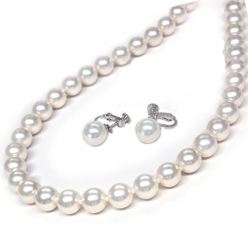 -. Title : 花珠貝パールネックレス・イヤリングセット8.0mm珠・長さ42cmタイプ[ジュエリー]<日本製>【ギフトラッピング済み】