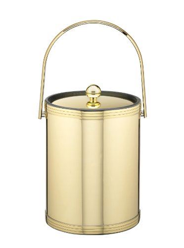 -. Title : Kraftware Polished Brass Ice Bucket with Triband Accents and Track Handle - 5 Quart