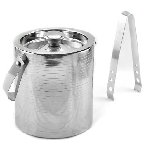-. Feature : Double wall stainless steel construction for durability and maintaining temperature of cold items longer / Handle for easy transport / Mirror finish with subtle etched lines that run parallel on exterior surface / Ice bucket includes stainless steel lid and tongs / Maintains temperature
