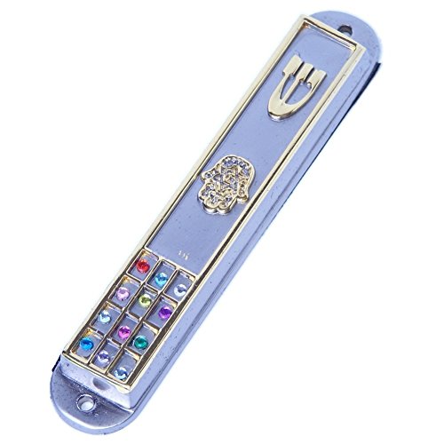Hamsa with Star of David Silver and Gold plated Mezuzah hoshen stones. 3.5 Inches and comes with The priestly breastplate