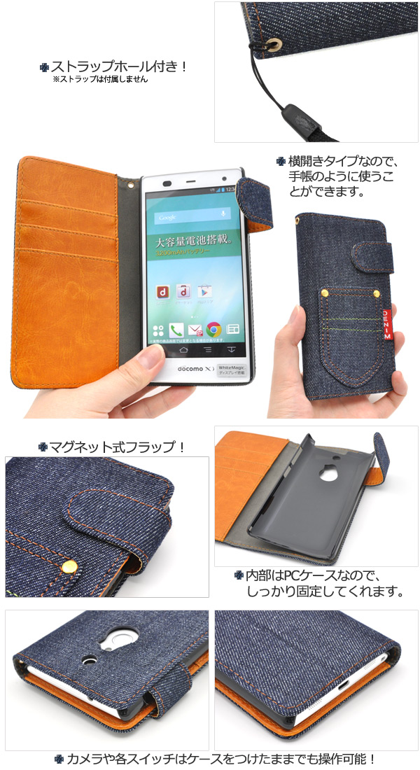 ARROWS NX F-01F用デニムデザインスタンドケースポーチ(ジーンズデザイン)