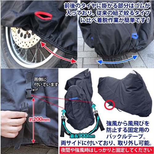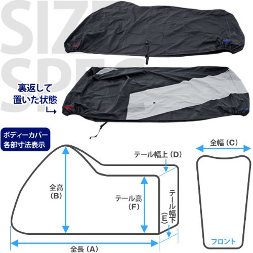 -. Feature : バイクカバー 3L 溶けない 蒸れない 超撥水 防水 厚手 高級バイクカバー / カバー内側は溶けない裏打ち生地で、エンジン停止直後の高温時にも使用可能。エンジン、エキパイ、マフラーの接触部分に熱を遮断するコットンポリエステル生地を裏打ちしてあります / 前後に設けたロックホールで、防犯体制も重視。大型、極太のワイアーロック、U字ロックにも対応 / 全長:240cm(A)/全高:140cm(B)/全幅:107cm(C)テール幅上:32cm(D)/テール幅下:45cm(E)/テール高:98cm(F) / 表:ポリエステルオックス300D 100%裏:コットンポリエステル (綿85% ポリエステル15%)