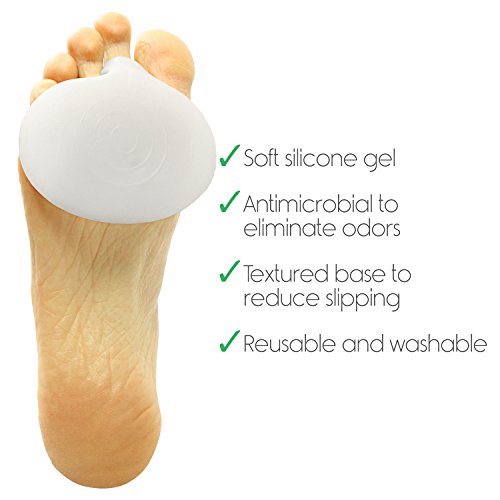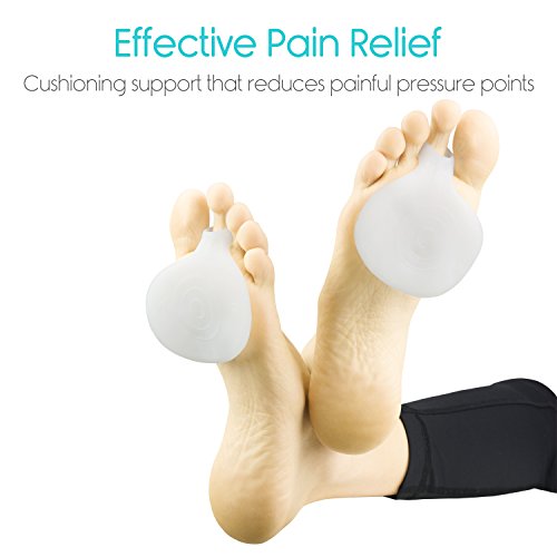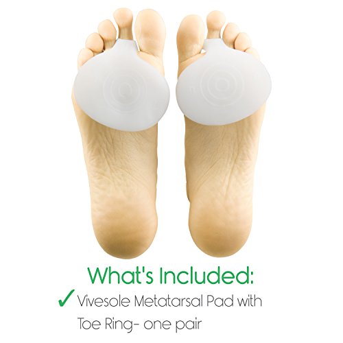 Metatarsal Pads by Vivesole (Two Pairs) Providing relief from foot pain, metatarsalgia and other foot problems, the cushioning gel pads eliminate painful pressure points and calluses, while supporting the ball of the foot. Effective Pain Relief The gel metatarsal pads effectively minimize pain from painful foot problems, such as metatarsalgia by cushioning and supporting the ball of the foot. The soft, cushioning gel evenly distributes pressure to eliminate painful pressure points and calluses and provide additional support during everyday activities. Fits Any Shoe: The gel pads fit in most shoe styles and are reusable. Shock Absorbing Gel: The cushioning, medical grade gel absorbs the shock of each step, evenly distributing the pressure across the pad of the foot. Easily cleaned by hand washing, the gel inserts are also antimicrobial to eliminate odors from bacterial build-up for extended wearability. Nonslip Toe Ring: A integrated toe loop stretches to comfortably fit most toe sizes. The non slip gel surface and toe ring hold the gel pads in place without slipping and sliding. What's Included: One pair of Vivesole Metatarsal Pads 0 |