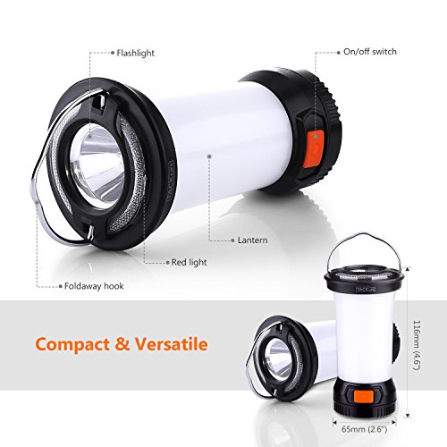 ★Package Content: 1 × Tacklife LCL1A camping lantern 1 × 18650 2600 mAh battey 1 × carabiner 1 × micro USB charging cable 1 × User manual 1 × Months Warranty