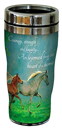Courage, Strength, Loyalty Horse Travel Mug, Stainless Lined Coffee Tumbler, 16-Ounce - Gift for Horse People and Lovers - Tree-Free Greetings 25858