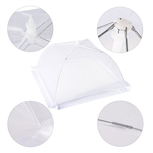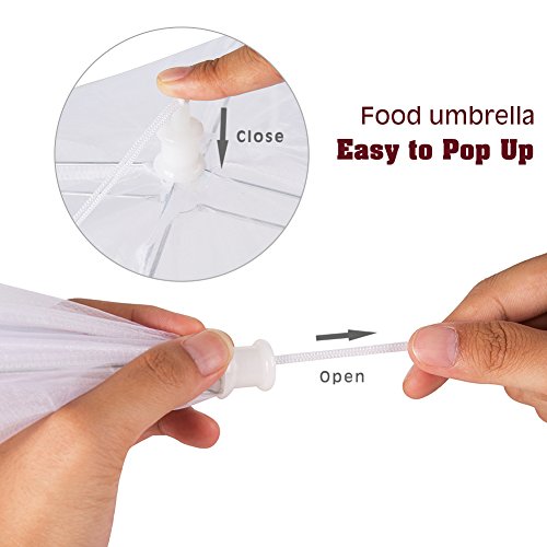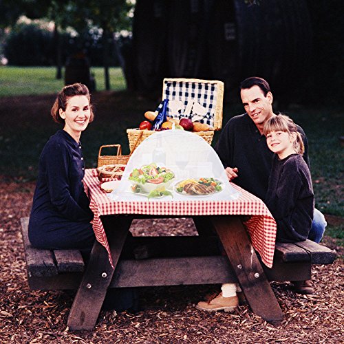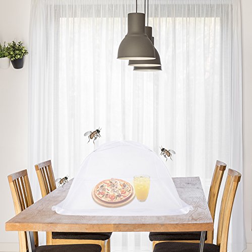 Description: Please Take these food tents wherever you go, and always have them easily accessible to keep unwanted insects away from your food. After popping into place, these food covers lock and do not collapse until you're ready to put them away. Large enough to contain a party-sized platter of food, and tall enough to shelter a good-sized pot, these food tents have you covered! Entertain with ease, and enjoy your food instead of worrying about whether or not there are insects swarming around the hors d'oeuvres.