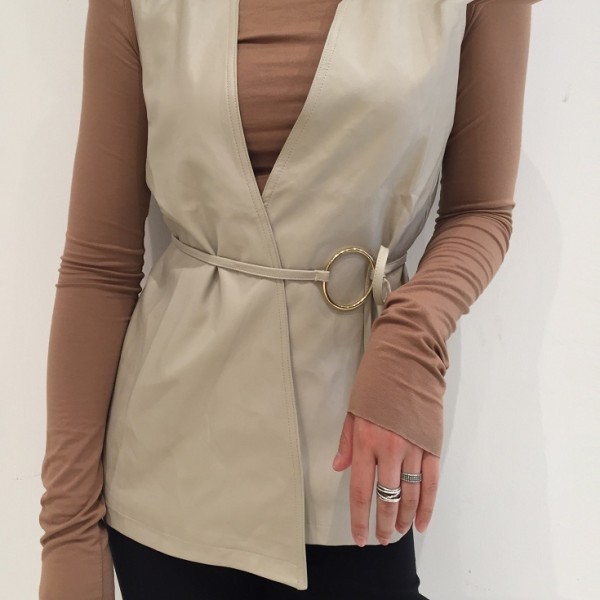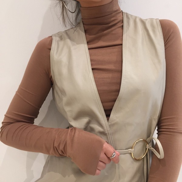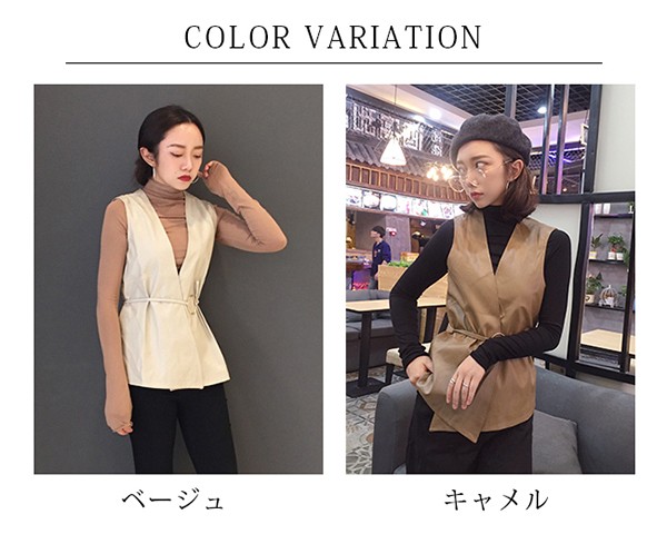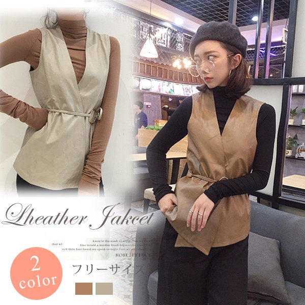 デイリーに活躍してくれそうなアイテム☆ライダースタイプの合皮ベスト!スリーブレスはハードになり過ぎないし重ね着コーデにぴったり?軽くてソフトなPUジャケットは着心地よし!本格的なレザーベストで着こなしにスパイスをプラスしてみて!(注意事項)※撮影時のライティング、ご覧になっているモニター?PC環境により実際の商品と色味が異なって見える場合がございます。※機械による生産過程におきまして、どうしても生地を織る際の糸の継ぎ目や多少のほつれ、または色ムラなどが生じている場合がございます。■状態:新品未使用■透け感:なし■素材:PU■カラー:ベージュ キャメル■サイズ:フリーサイズフリーサイズ 着丈65cm 肩幅36cmバスト98cm