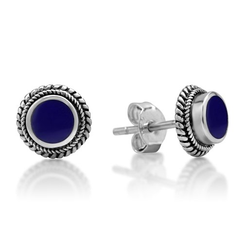 -. Title : 925 Sterling Silver Bali Inspired Tiny Gemstone Braided Round 9 mm Post Stud Earrings