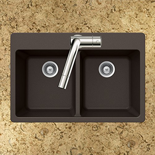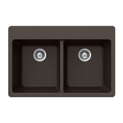 Houzer M-200 MOCHA Quartztone Series Granite Top Mount 50/50 Double Bowl Kitchen Sink, Mocha
