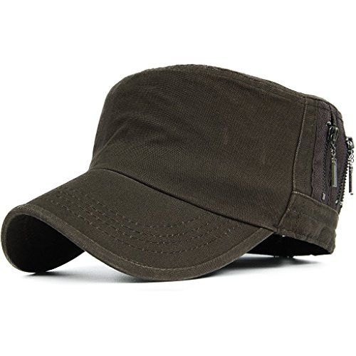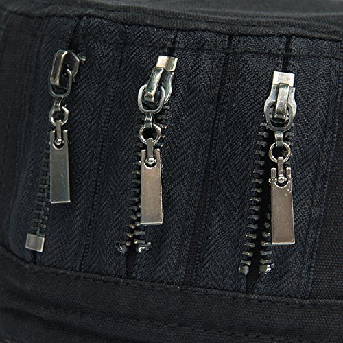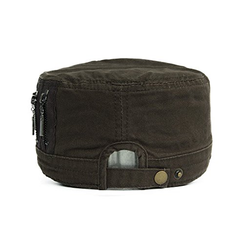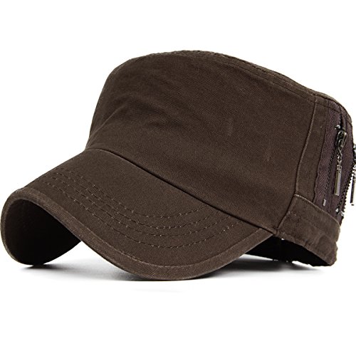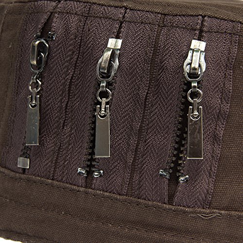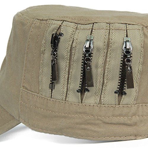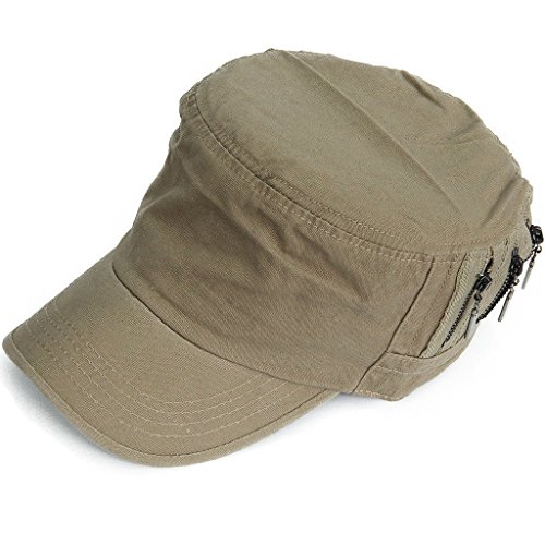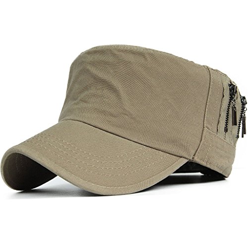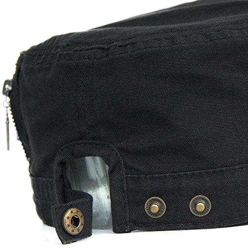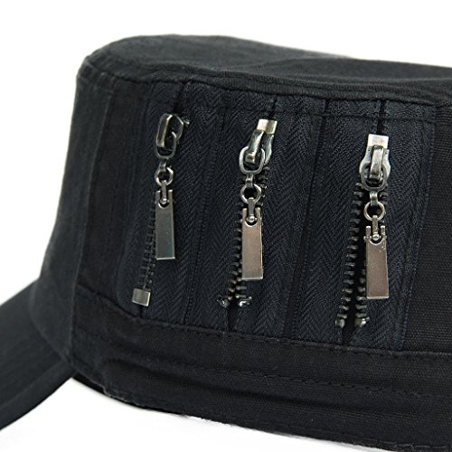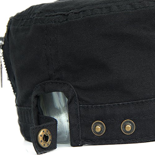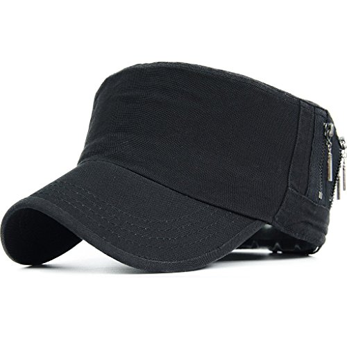 This solid plain color cadet hat fit unisex adult casual use everyday, 3 zippers on the left side, adjustable with brass button closure