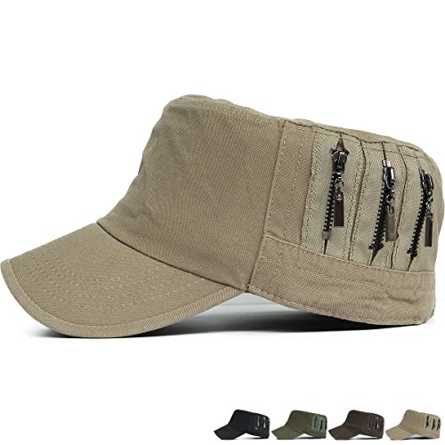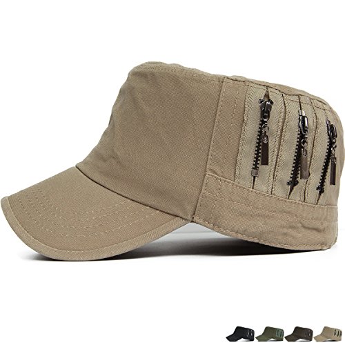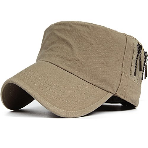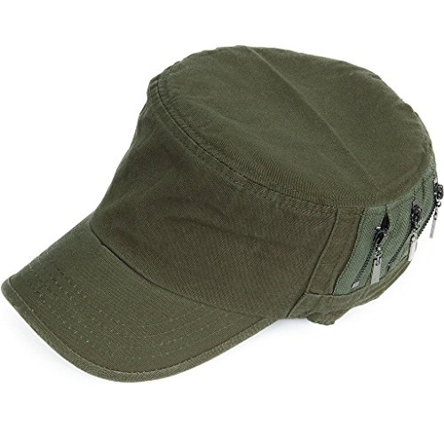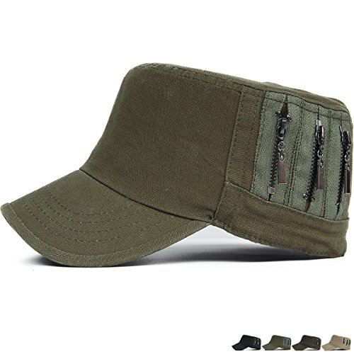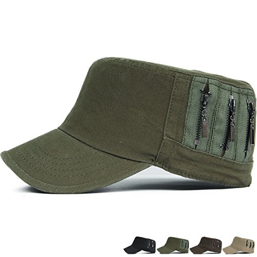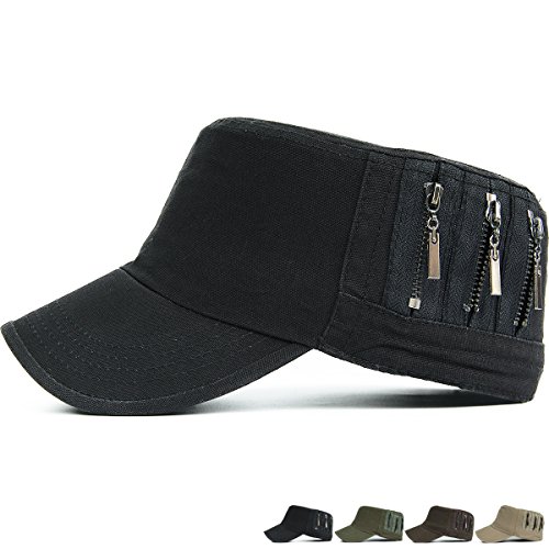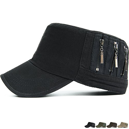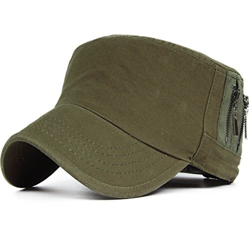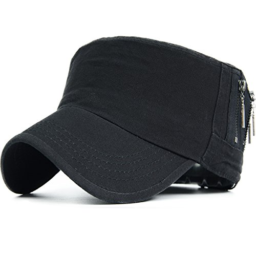 REDSHARKS Unisex Flat Top Cadet Cap Military Army Castro Patrol Sun Hat Vintage Zipper