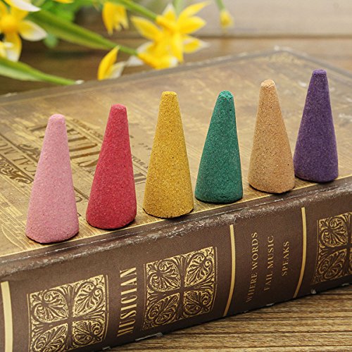 Studio : Jeteven Publisher : Jeteven Binding : Kitchen Product Description Material: Wood Essential Oil Scent: Mixed Scent Color: Mixed Size: (H)X(W)3X1.2cm/1.18'X0.47'(appr.) Features Brand New and high quality. Mixed scent in random combination, like sandalwood, lavender, lily, white sandalwood, pomelo leaf, bodhi, lemon, night sweet, osmanthus, green tea, jasmine, rose and other scents Suitable for homes, yards, parties, weddings, offices, birthday parties and romantic moments. But pregnant women and infants should not use it. Good for soothing emotion, improve sleep quality, anti depression, remove moisture and more. Making romantic atmosphere and indoor air purification. A burning time: about 10 minutes without wind, the best ornamental effect. Stored in transparent box with 80pcs, strong fragrance. Package included: 1 Box Incense Cones(1 box of 80pcs, without ceramic holder) Notice: Please allow 1-5mm error due to manual measurement and make sure you do not mind before ordering. Please understand that colors may exist chromatic aberration as the different placement of pictures.