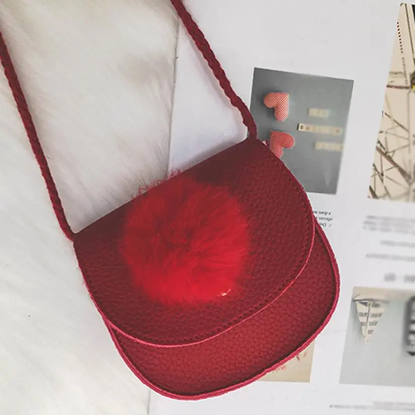 Girls Mini Crossbody Bag:Children Grils Cute Hairball Leather Messenger Bag bolso mujer