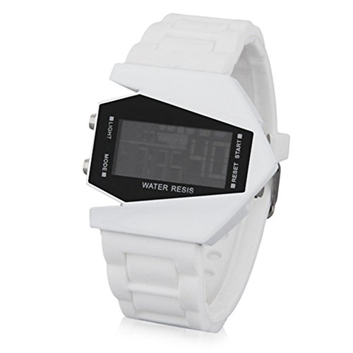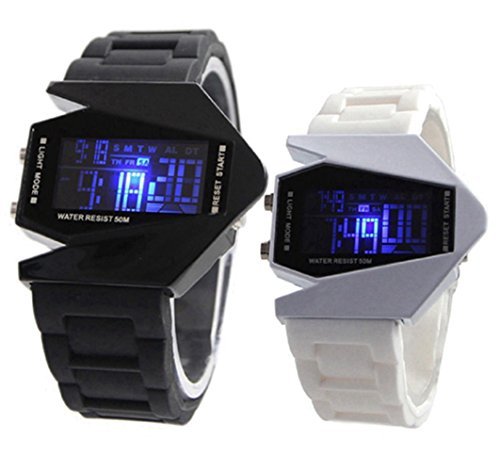 KitMax (TM) Pack of 2 Pcs Novelty Unisex Military Army Plane Style Automatic LED Digital Silicone Band Sports Wrist Watch (One Black One White)