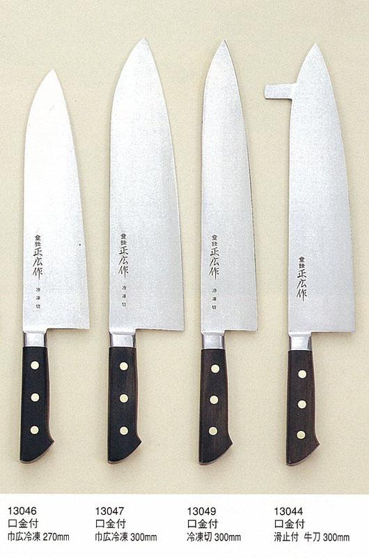 焼入れ職人によって、昔ながらの方法で一丁一丁焼入れを行っています。 ※サプライヤー直送品 ご注文後7~8営業日後の出荷となります【商品名】238273 正広作 口金付 巾広冷凍270mm #13046