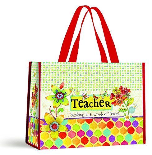 Teaching is a Work of Heart Teacher Floral Pattern 20 x 17.5 Inch Giant Nylon Tote Bag with Handles Pack of 6