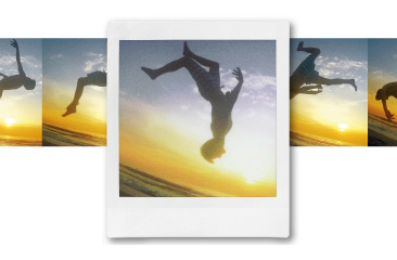 1枚のチェキプリントに出力できます。(時間差は、最大2.0秒まで0.2秒間隔で調整可能。)