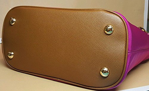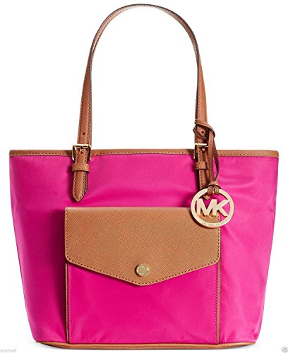 -. Brand : -. Color : Fuschia -. Department : womens -. EAN : 0889154938533 -. Feature : Nylon fabric with lage brown leather trim and golden hardware / Monogram P.R.Int lined interiors with a center zippered wall pocket and two large open compartments / Inner zippered pocket and four open slip pockets; front flap pocket with 3 card slots / Dual leather straps with a drop of about 7.5 inches / Measures approx. 10" (L, bottom), 12" (L, top) x 9.5" (H) x 5" (W) -. Model : 35H5GJ2T2C -. ProductGroup : Shoes -. ProductTypeName : HANDBAG -. Size : Medium -. Title : Jet Set Item Nylon Medium Tote in Fuschia -. UPC : 889154938533