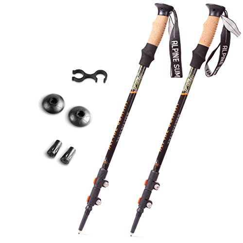 Alpine Summit Trekking Poles [ Pair ] Collapsible Hiking / Walking Sticks, Tungsten Tips, Ultralight, Cork Grips, Flip Locks