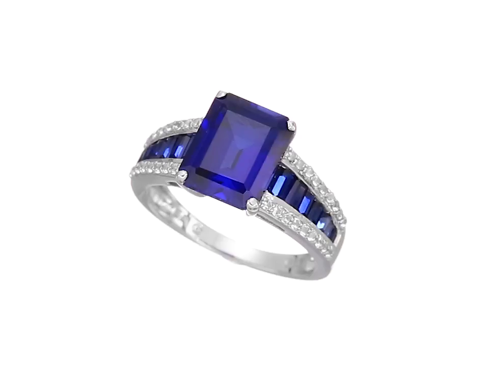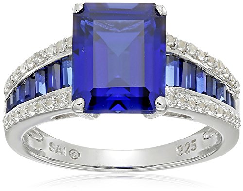Sterling Silver Created Ceylon Sapphire and Created White Sapphire Octagon Ring, Size 7