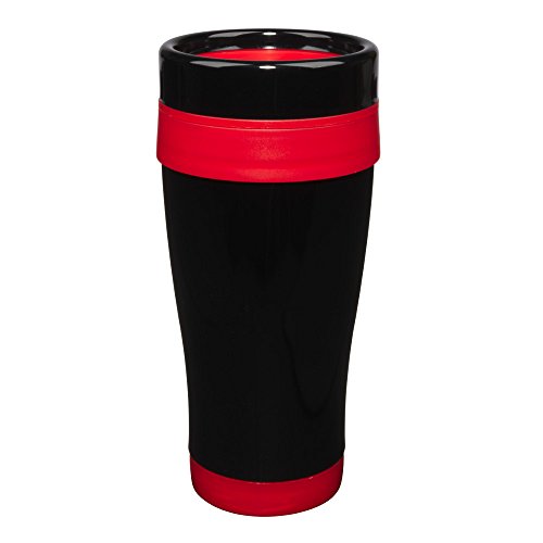 Formula Seven: Glossy Black Stainless Exterior with Colored Acrylic Liner and Screw On Lid with Slide Closure., Red
