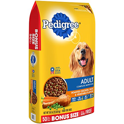 -. Feature : Contains one (1) 50-lb. bag of PEDIGREE Adult Complete Nutrition Roasted Chicken, Rice & Vegetable Flavor Dry Dog Food / Complete and balanced nutrition provides optimal levels of omega-6 fatty acid to nourish skin, and help keep your dogs coat shiny and healthy / PEDIGREE Food for Dogs features a delicious chicken flavor that provides antioxidants, vitamins, and minerals to help maintain a healthy lifestyle / This adult dog food features whole grains and a special fiber blend to support healthy digestion / Proudly made in the USA with the world's finest ingredients, No High Fructose Corn Syrup, No Artificial Flavors, and No Added Sugar
