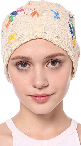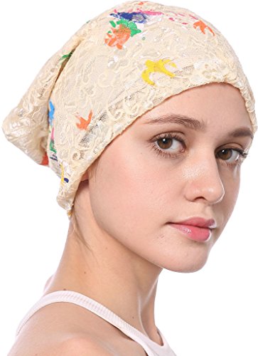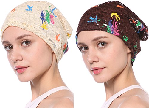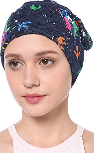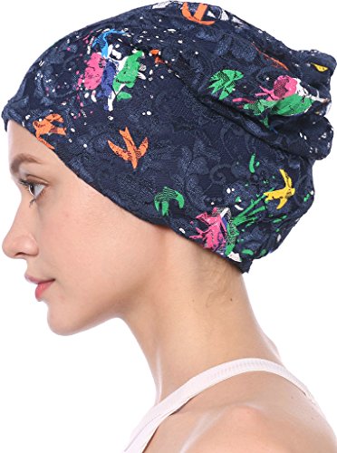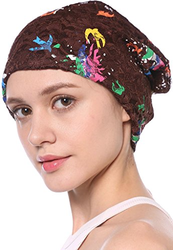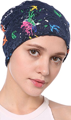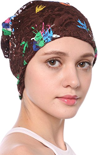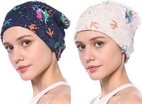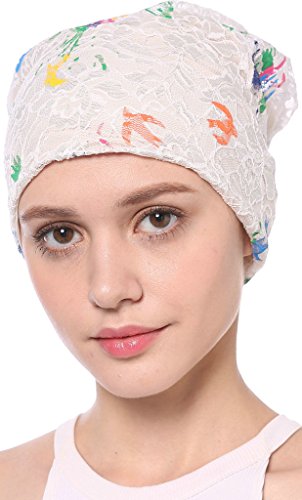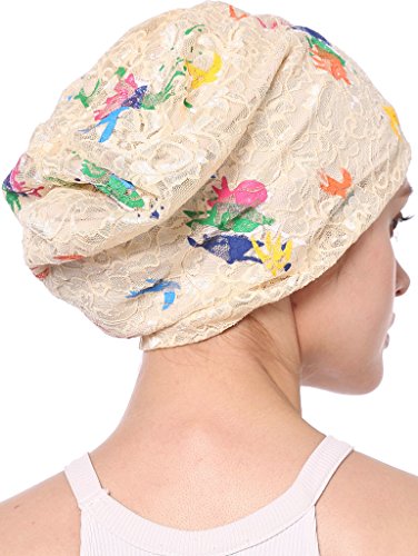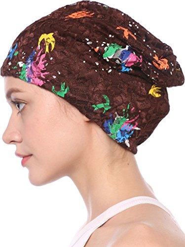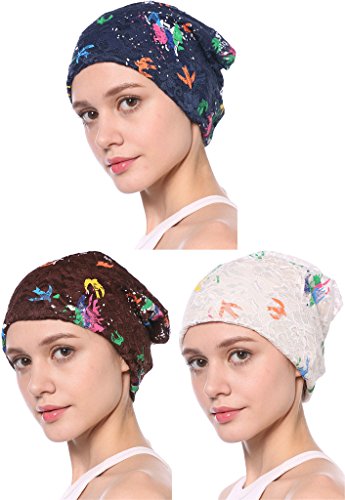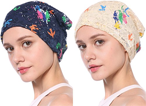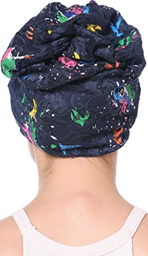 | (YI HENG MEI)/Accessories/Hats/DIRECT FROM USA/YI HENG MEI Women's Soft Breathable Paint Graffiti Lace Turban Chemo Cancer Beanie Nightcap |