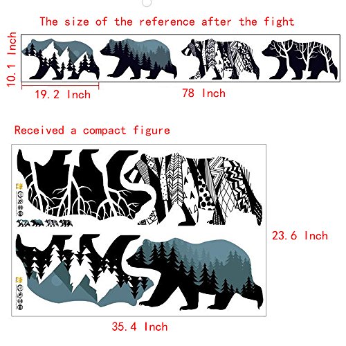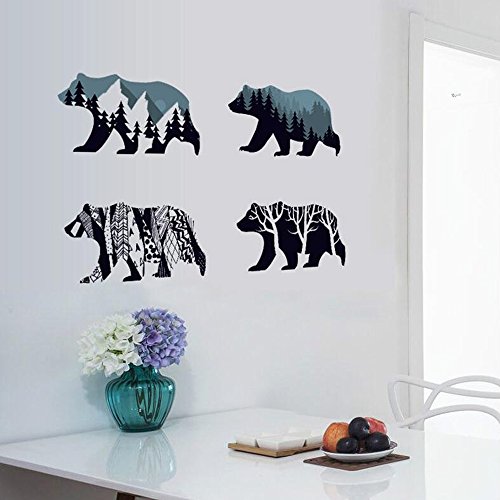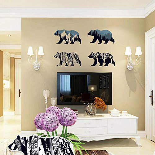 MLM Snow Mountain Forest Silhouette Polar Bear Wall Sticker Animal Wall Decal for Living Room Porch Children Bedroom Study Classroom Nursery Kids Room Décor (Bear)