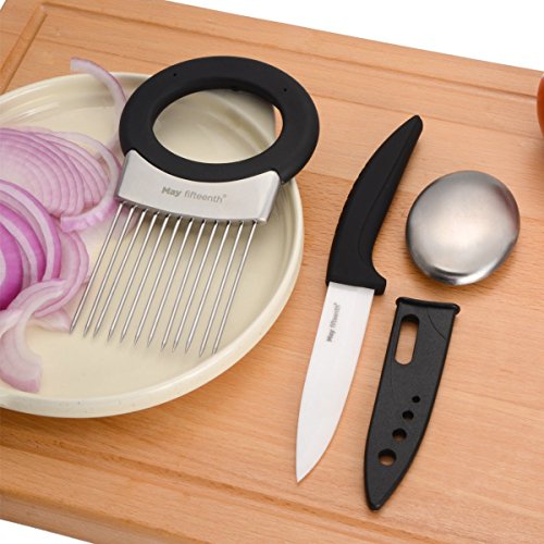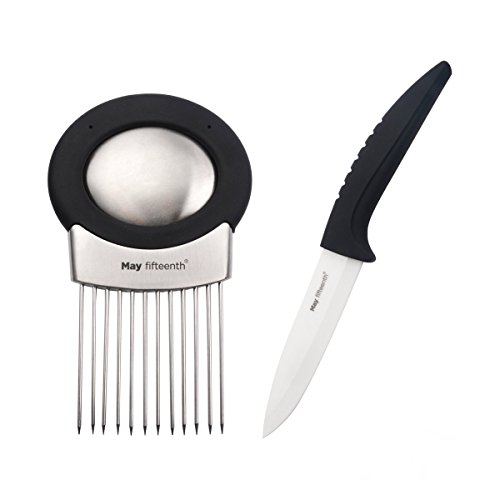 May Fifteenth 2 Pieces Onion Holder Slicer Set With Sharp Ceramic Knife MF-1736G