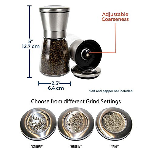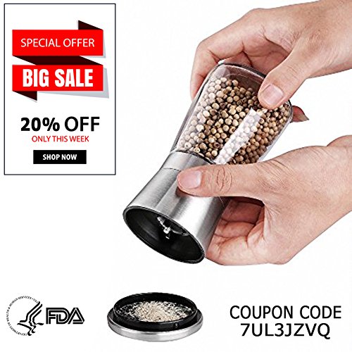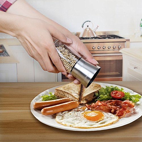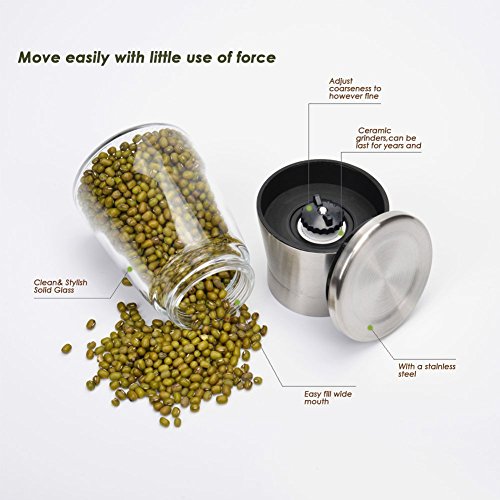 - KEEPS SPICES FRESH :This pepper grinder can keep your sea salt,spices,black pepper and white pepper stay fresh for long time,thanks to the seal of the stainless steel lid.Your grinding bottle will be kept away from moisture and dust, without deterioration for a long time.