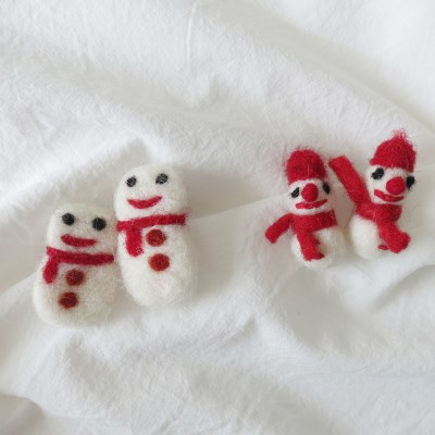 양모로 만들어진 펠트 눈사람으로 동글동글 입체적인 눈사람과 납작한 눈사람 두가지로 제작 했어요.