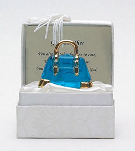Gift for Grandmother: 24K Gold Trimmed Blue Glass Handbag Keepsake - Touching Verse - Satin Lined Silk Presentation Box